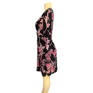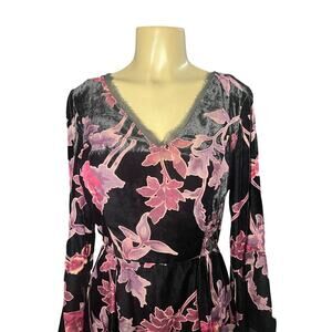 Kut from the Kloth Burnout Black Red Velvet Sheer Floral Dress Knee Length, Zip up back, Long Sleeve Size Small. The dress is marked size 2 however, the measurements suggest it will fit bigger than a 2, so I listed it as a small. Measures 18" armpit to armpit, 14" across the waist so approx 28" waist, 36" long, and 24 inch sleeves.