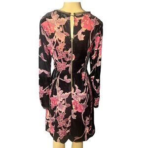 Kut from the Kloth Burnout Black Red Velvet Sheer Floral Dress Long Slee…