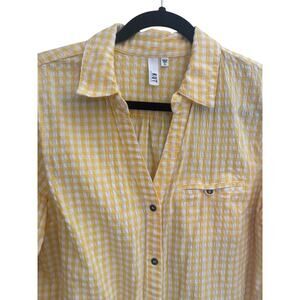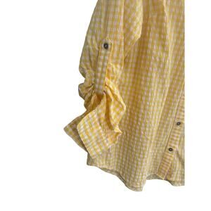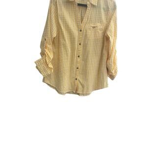 Kut from the Kloth Button Feena Top Women XL Yellow Textured Gingham V-Neck - see pics for measurements - very good used condition.