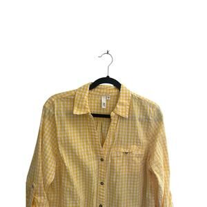 Kut from the Kloth Button Feena Top XL Yellow Textured Gingham V-Neck #6011