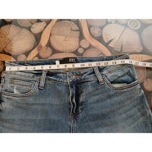 Kut from the Kloth Catherine Boyfriend Distressed Denim Jeans Size 8, in good pre-owned condition: no holes, no stains, minor wear, has been recently cleaned, may be stale from storage. Marked as a women's size 8, measurements are taken while laying flat and are approximate: (see photos)
