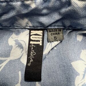 Kut from the Kloth Chambray Denim Shirt Dress Women's Small Blue Floral Pockets