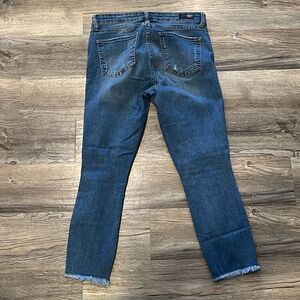 These jeans are made by Kut from the Kloth. They are a medium wash denim, cropped length with factory distressing and a high rise waist. Size 6 and in nice pre owned condition. Smoke and pet free home.