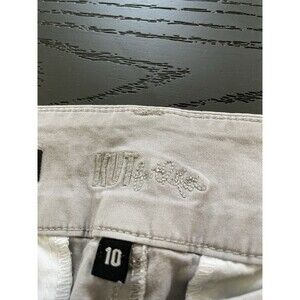 Embrace effortless style with the Kut from the Kloth Crop Trouser, tailored for women who appreciate a blend of comfort and sophistication. In a versatile taupe hue, these size 10 trousers feature a crisp, solid pattern that pairs seamlessly with a variety of tops for any casual occasion. The stretch-infused cotton and spandex material ensures a flattering fit with a comfortable mid-rise and a straight leg style that's both contemporary and timeless. Attention to detail is evident with the flat front design, complemented by a seamless zip, button, and hook & eye closure for a smooth silhouette. With a 25-inch inseam, these pants are ideal for year-round wear, transitioning seamlessly from spring to summer, fall, or winter. Machine washability adds convenience to the garment care, making these trousers a practical addition to your wardrobe.