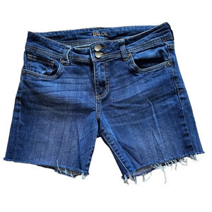 Good Condition! Kut from the Kloth Dark Wash Raw Hem Double Button Bermuda Jean Shorts- Women's 6