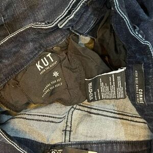 Made a 51% cotton, 21% polyester, 15% Lyocell, 11% viscose, and 2% elastic. Laying flat measure 13" in the waist, 14.5" hips, 10" rise, and 27" inseam. Be sure to check out all of my other Kut from the Koth listings.