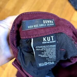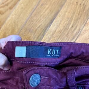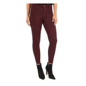 Kut from the Kloth Donna High Rise Ankle Skinny Burgundy Raw Hem Womens 2