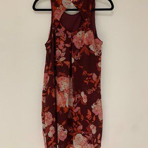 Kut from the Kloth women's floral dress, size 4. Easy to dress up or down, with lots of little details. Knee-length, front pleats, back cutout (bra is still 100% hidden!), and an easy, flowy silhouette.