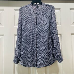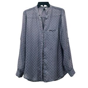Kut from the Kloth Geometric Sheer Button Down Blouse Size M