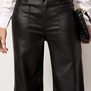 Elevate your style with these chic black wide-leg leather pants. Perfect for any occasion, they offer a sleek and modern look.