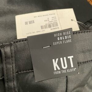 Kut from the Kloth Goldie High Rise Super Flare Black Wide-Leg coated pants