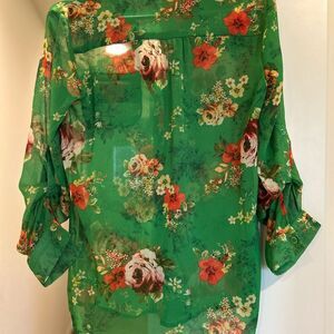 Kut from the Kloth Green and Red Floral Long Sleeve Blouse with 3/4 Option, XS