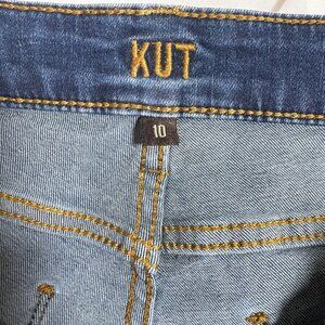 Awesome pair of Kut from the Kloth crop jeans. Size 10. Worn only a few times - in excellent condition! 99%cotton and 1% spandex helps these crops hold their shape while giving a little for comfort.