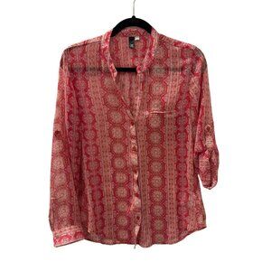 Kut from the Kloth Jasmine Button Up Pink Chiffon Top Blouse size Small Boho