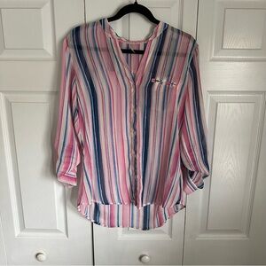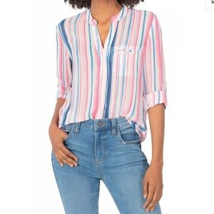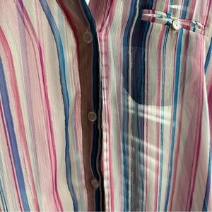 Kut from the Kloth Jasmine Womens Chiffon Blouse L/XL Roll Tab Stripe Boho Sheer