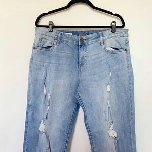 Kut from the Kloth Jeans CATHERINE BOYFRIEND Jeans Light Wash Distressed Size 14