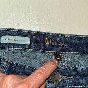 kut from the kloth, katherine boyfriend, stretch jeans, dark wash, women’s size 12, cuffed jeans, relaxed fit, casual jeans, comfy denim, everyday jeans, rolled hem, classic jeans