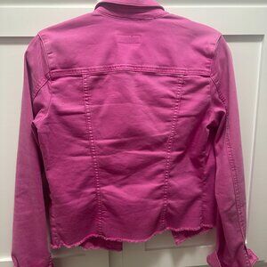 An essential denim jacket goes for a remix with a fitted silhouette and a frayed, slightly cropped hem.