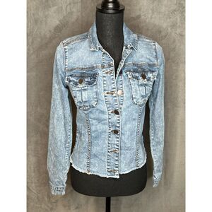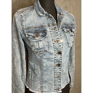Kut from the Kloth Kara Frayed Raw Hem Denim Jacket Blue (S)