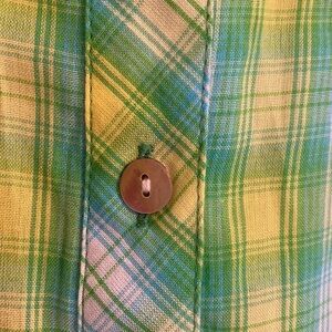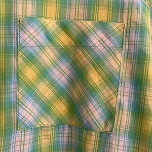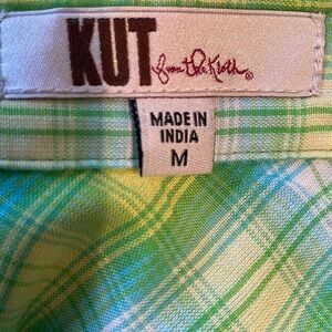 Kut from the Kloth L/S Tartan Plaid Shirt Lightweight Cotton Lime Green Yellow M