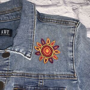 Kut from the Kloth Medium Jean Jacket Distressed Stretch Trucker Blue Denim