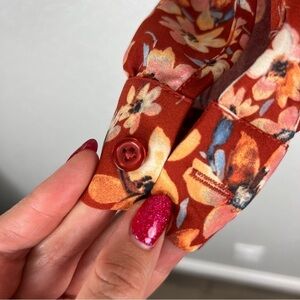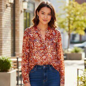 Kut from the Kloth NWOT Sinclaire Rust Floral Button Front Long Sleeve Blouse M