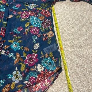 Kut from the Kloth Navy Floral Sheer Sinclaire Button Down Blouse Size Large