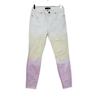 Kut from the Kloth Pink Yellow Ombre Gradient Tie Dye Raw Hem Stretch Jeans Sz 2