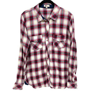 Kut from the Kloth Plaid Metal Snap Shirt, Size Medium, Roll-Tab, Long Sleeve
