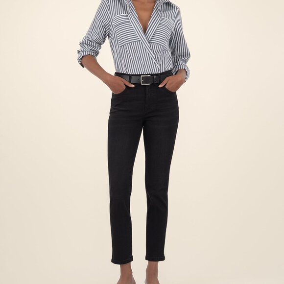 Made from stretch-kissed denim in a beautiful inky wash, these ankle-length straight-leg jeans with great stretch in a super soft fabric are sure to be a favorite for everyday casual looks with Fab Ab front pockets that smooth and add comfort.
