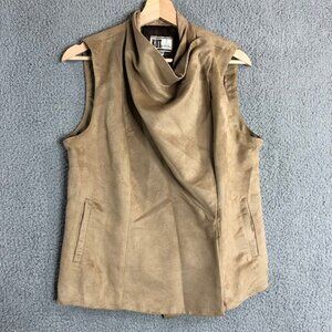 Kut from the Kloth Sandy Beige Faux Suede Draped Button Vest Size Large