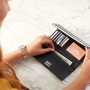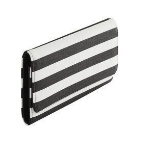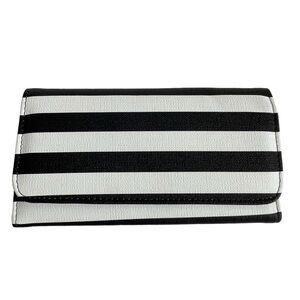 Kut from the Kloth Tri-fold Envelope Wallet Black White Stripes Snap Closure
