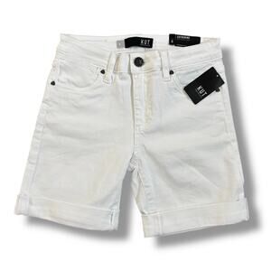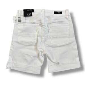 Experience the timeless appeal of Kut from the Kloth's white jean shorts, crafted from solid white denim for a crisp and versatile look. These shorts feature a clean, classic design with neatly rolled cuffs, making them perfect for casual summer outings.