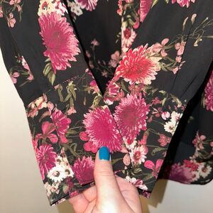 Kut from the Kloth Women’s Black Pink Floral Button Blouse Size Small EUC