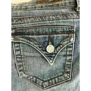 Stylish boot cut jeans. Classic dark blue wash. Perfect for casual wear.