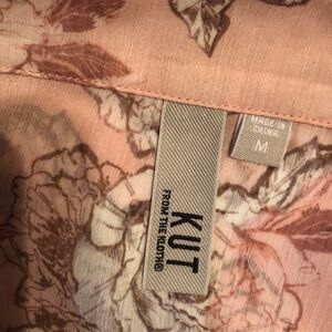 Kut blouse, semi sheer fabric, pink and beige floral. Buttons to mid chest, roll up sleeves . NWOT