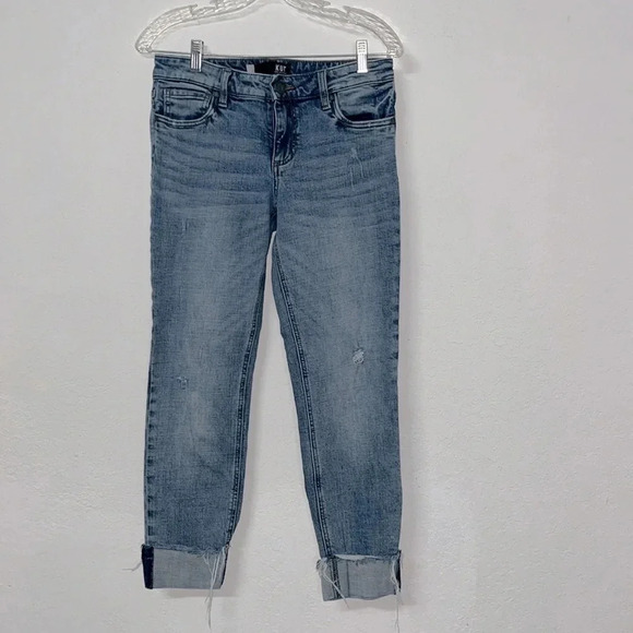 Kut from the Kloth jeans rolled cuff capri denim jeans light distress size 4