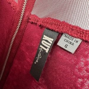Kut from the Kloth size 6 red crochet lace dress sleeveless mesh neck zip back