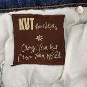 Kut from the Kloth soft cotton jeans with a touch of stretch. Factory fade and wiskering, and a skinny straight leg. Hits at the ankle unless you are short!!