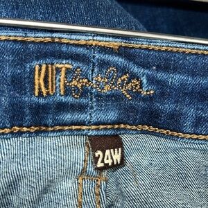 Kut from the Kloth toothpick skinny dark washed denim jeans. Size 24W. Waist measures approximately 24. Inseam measures approximately 29. Rise measures approximately 12. EUC.
