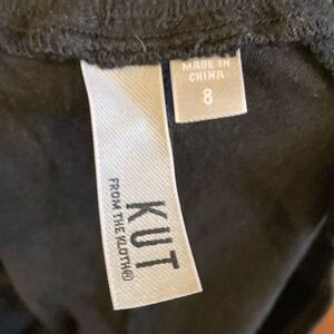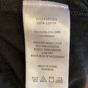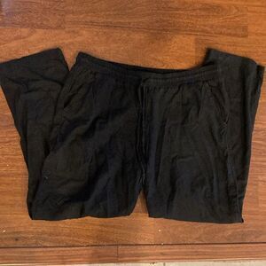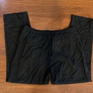 Black elastic waist pants, linen and rayon blend, has front pockets, 15 in waist, 25 in inseam, in good condition