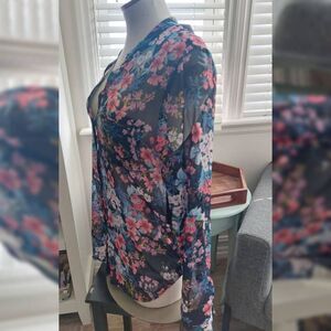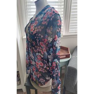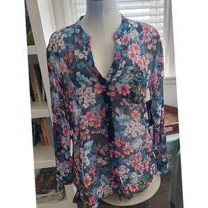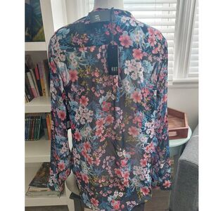 Kut from the Kloth Jasmine Button Front Sheer Long Sleeve Blouse Size Large NWT