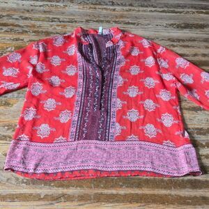 Kut from the Kloth Semi-Sheer Paisley Button Down Blouse – Size Large (Red)