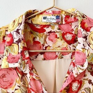 Kut From The Cloth Pink Yellow Floral Sheer Pockets Long Sleeve Button Up