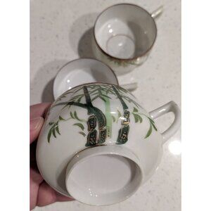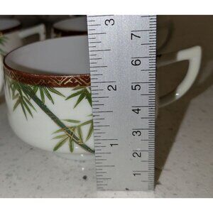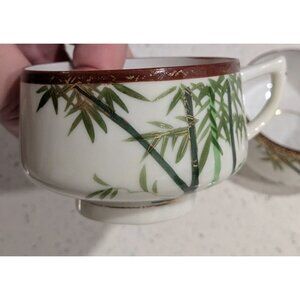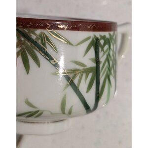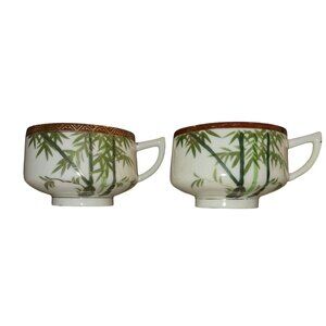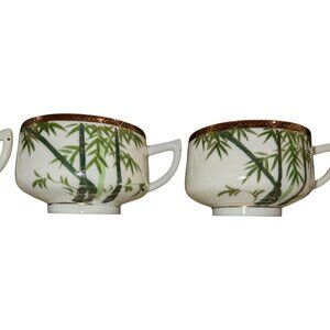 Elegant bamboo motif with a geometric border, crafted from fine bone china. Lightweight and durable. No saucers included. Made before 1930.