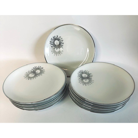 Kutani Burst China (11) Bread & Butter Plates White/Silver/Gray Japan Hand Painted VTG