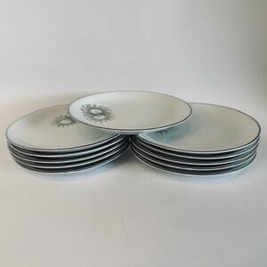 Kutani Burst China (11) Bread Plates White/Silver/Gray Japan Hand Painted VTG