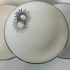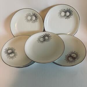 Kutani Burst China (7) Salad Plates White/Silver/Gray Japan Hand Painted VTG