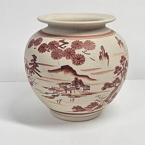 Kutani Satsuma Vase Planter Vintage Red Scenic Handpainted Porcelain Japan