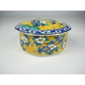 Kutani Takahashi Octagon Trinket Box Japan Floral Bird Vintage Lidded Porcelain